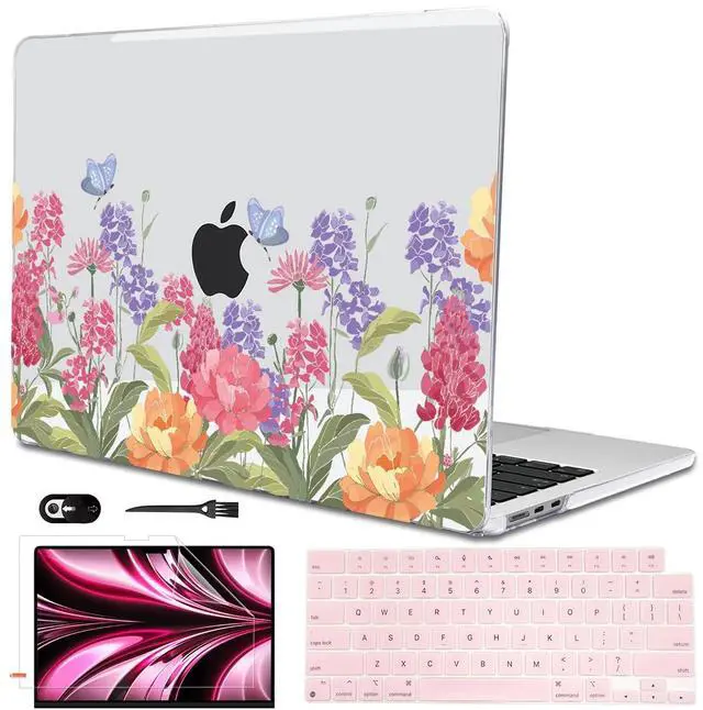 LCMOCICO Compatible with MacBook Air 13.6 inch Case 2025 2024 2023 2022 Release A2681 A3113 A3420 Cover M4 M3 M2 Chip, Pattern Plastic Hard Shell Case Screen Film Keyboard Skin, Pink & Purple Flowers
