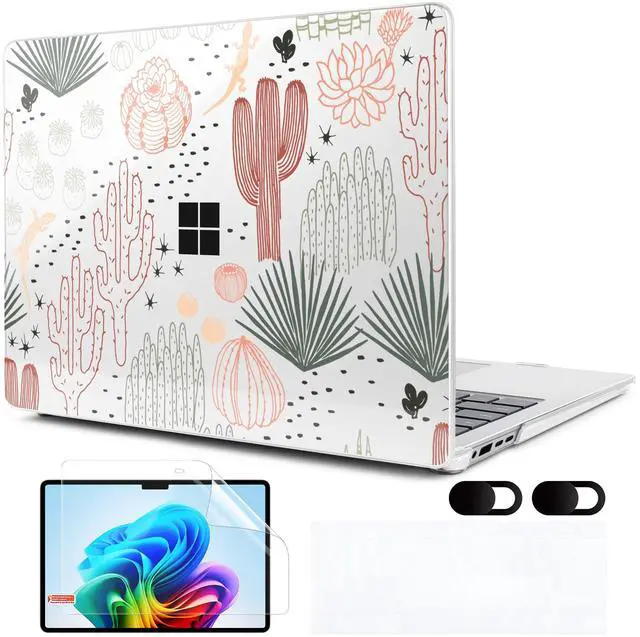 MEEgoodo Case for Microsoft Surface Laptop 13.8 inch Touchscreen 2024 (7th Edition), Clear Cover Fit Model 2036, Laptop Hard Shell with Keyboard & Webcam Cover & Screen Protector, Cacti