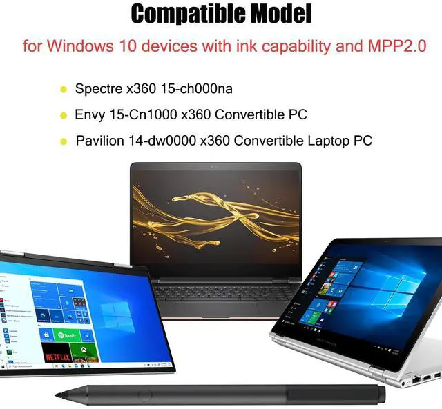 Compatibility: Compatible with HP Spectre x360 15-ch000na(2PH79EA), HP ENVY 15-Cn1000 X360 Convertible PC, HP Pavilion 14-dw0000 x360 Convertible Laptop PC.devices support Windows Ink and presentation mode.