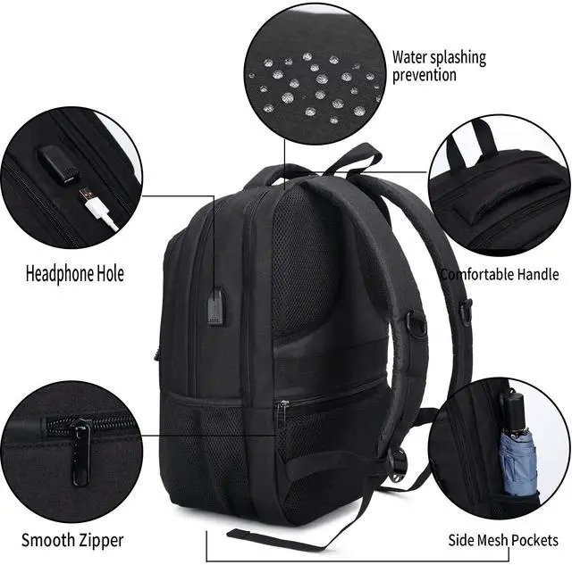 Monsdle Travel Laptop Backpack Anti Theft Backpacks with USB Charging Port, Travel Business Work Bag 15.6 Inch College Computer Bag for Men Women, Black