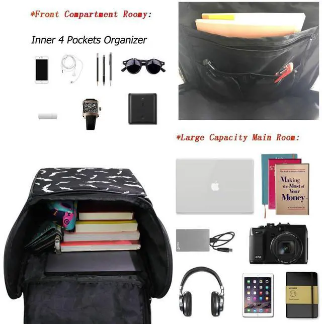 Spacious Compartment: Generous enough for books, cosmetics, magazine, computer, tablet, glasses, wallet, hats, headset, earphone, bottle, power bank, cell phone, vacuum cup, document and clothes.