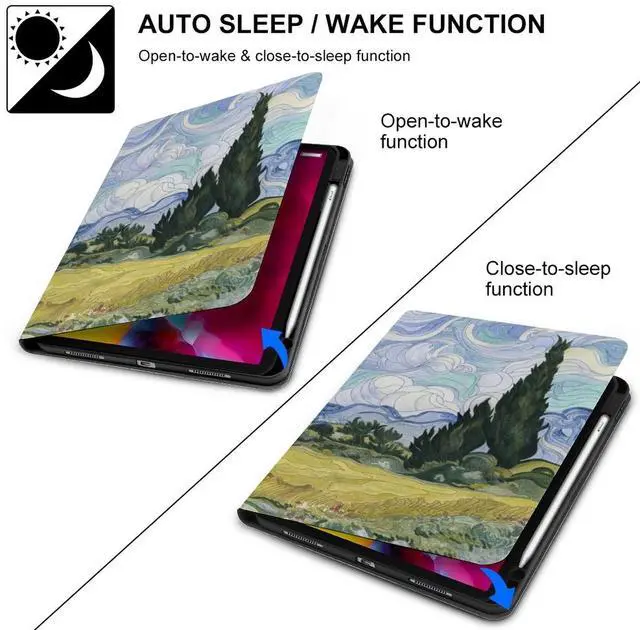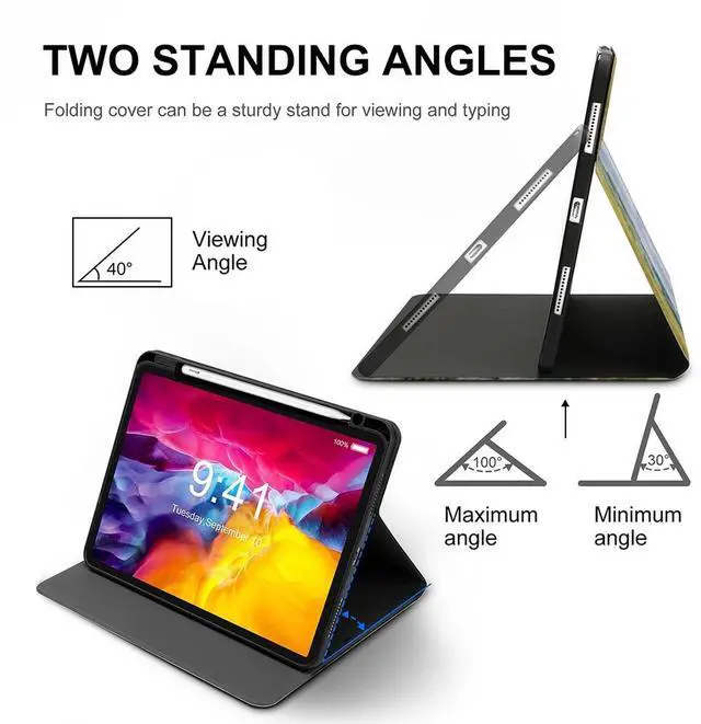 The Niapessel iPad case provides you with two standing angles to meet the needs of watching or writing the iPad; When the cover is opened/closed, the front cover can automatically put the tablet in the sleep/wake state.