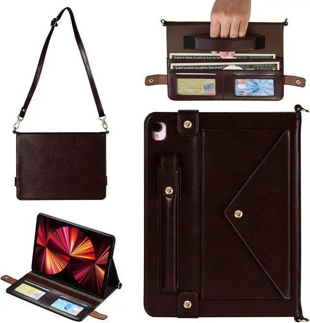 Elegant iPad 10.5" Case / iPad 10.2" Case for Women, Smart Folio Stand Case with Handle, Pen Pocket & Shoulder Strap