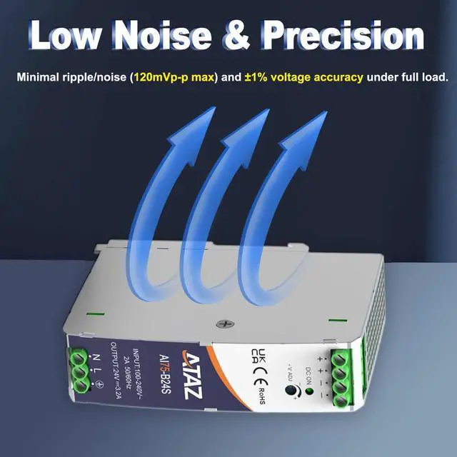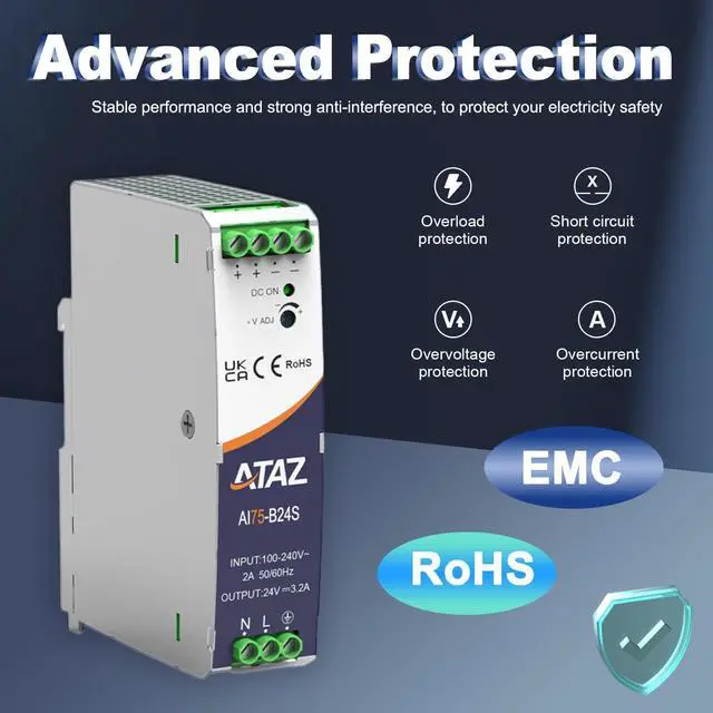 The AC/DC 24V DIN Rail Power Supply is a reliable and cost-effective solution for powering a variety of industrial applications. With an output of 24V 3.2A, this device is designed for maximum stability and efficiency. It also offers superior protection with comprehensive protections including PFC, over-voltage protection, over-current protection, and short-circuit protection. The built-in vent design ensures fast heat dissipation and the extended MTBF greatly improves its reliability. The DC OK function allows for input of both AC and DC sources, making it more versatile in various applications and protecting against potential damage caused by voltage fluctuations.