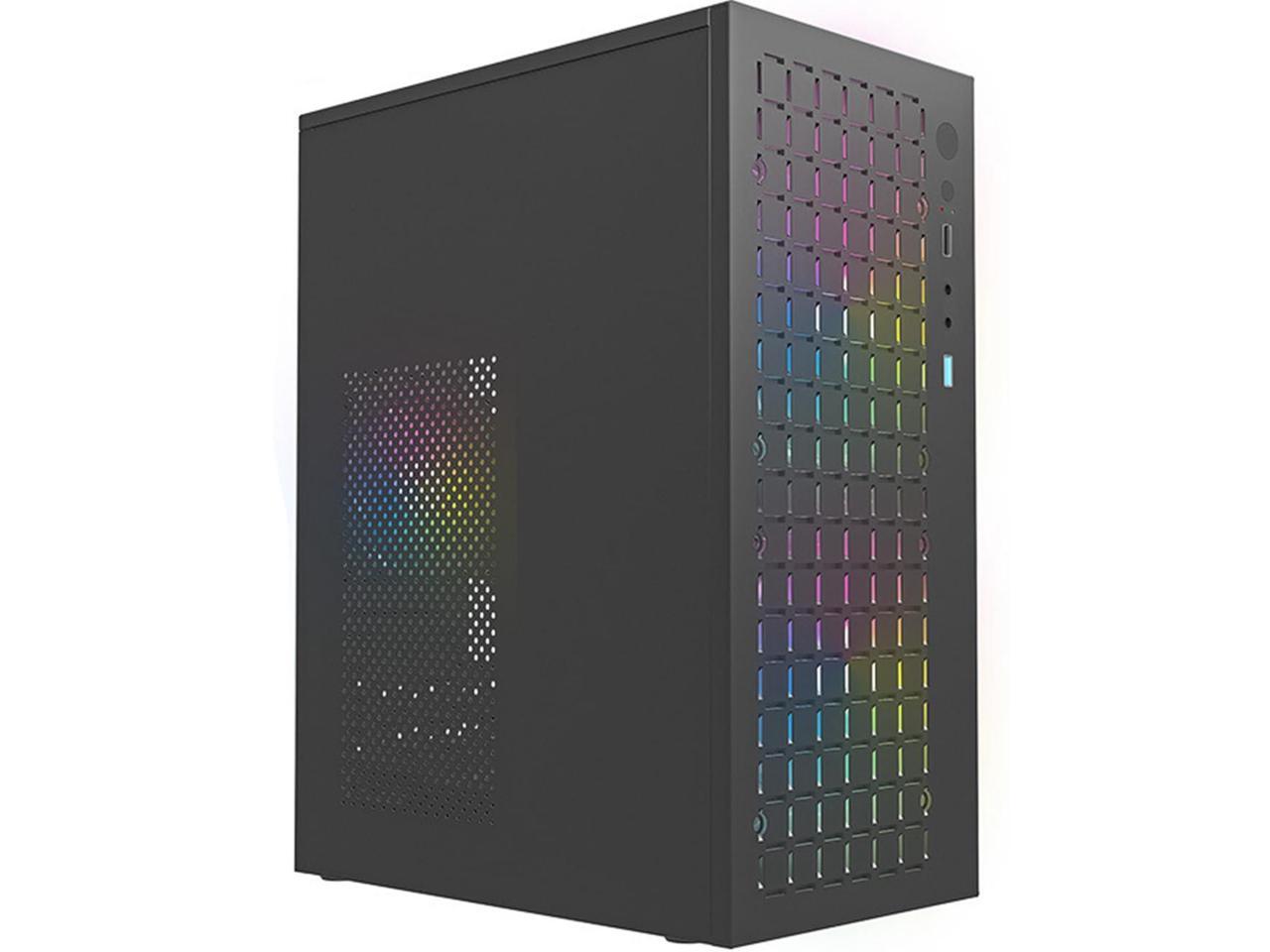 Material: This chassis is made of 0.6mm thick steel plate, which improves the quality of the chassis and is not easily deformed; The panel adopts a grid breathable hole design, which can be matched with various fan lighting effects