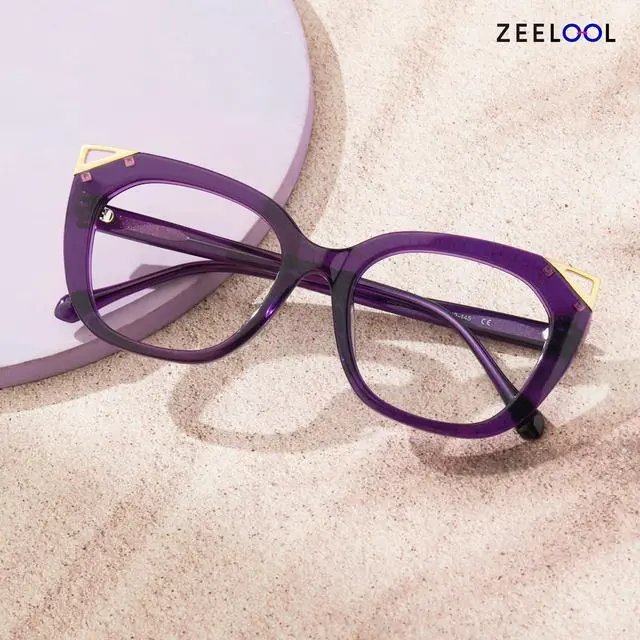 Zeelool Chic Cat Eye Glasses Frame for Women Purple Designer Eyeglasses Fashion Non-prescription Full Eyewear Glasses JGA273646-04