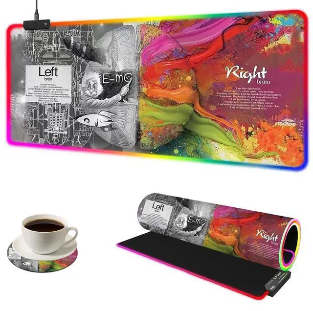 YQE RGB Gaming Mouse Pad, 35.4" x 15.7" Desk Mat for Keyboard and Mouse, LED Game Mousepad with 14 Colors Modes, Non-Slip Desk Pad Matt Protector+Coasters-for Home, Office, Desktop Left Right Brain