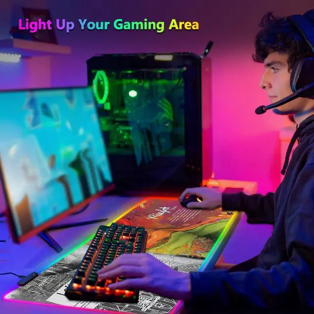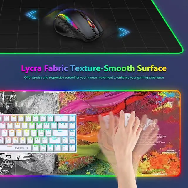 14 Colors Modes: This rgb mouse pad offers 14 lighting modes, including colorful dynamic breathing and monochrome static lighting, enhancing the ambiance for an immersive gaming experience. The led mouse pad also features a power-off memory function to retain your last selected mode.
