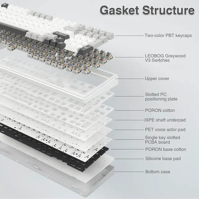 AULA F99 Wireless Mechanical Keyboard, Tri-Mode BT 5.0 / 2.4GH z/USB-C Hot Swappable Custom Keyboard+LEOBOG Graywood V3 Switches Set