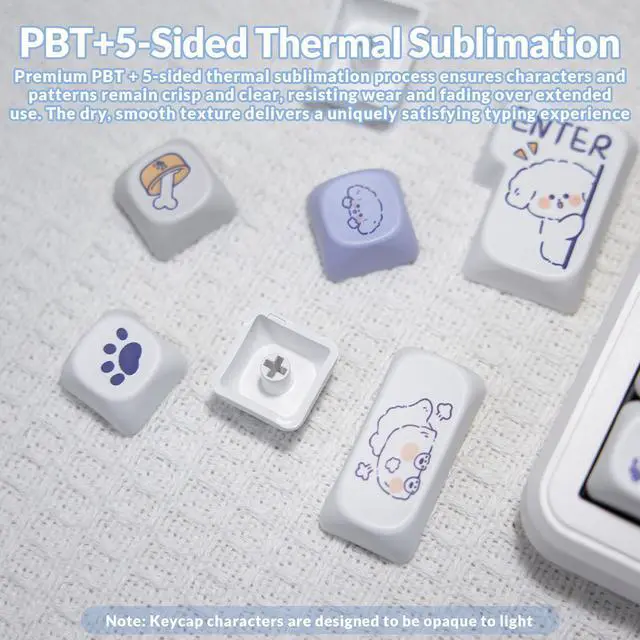 AULA MOA Keycaps 130 Keys, Dye Sub PBT Keycap Set for Mechanical Keyboard, Cloud Puppy Pattern Cute Keycaps Compatible with MX Cherry Switches and ANSI/ISO, 100%, TKL, 75%, 65%, 60% Layout