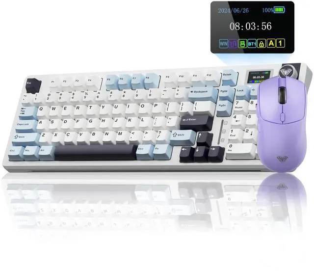Wireless Keyboard and Mouse Combo, AULA S98 Pro Wireless Mechanical Keyboard with Screen & Knob, Tri-Mode Hot Swappable Creamy Keyboard+SC580 Wireless Gaming Mouse Light purple