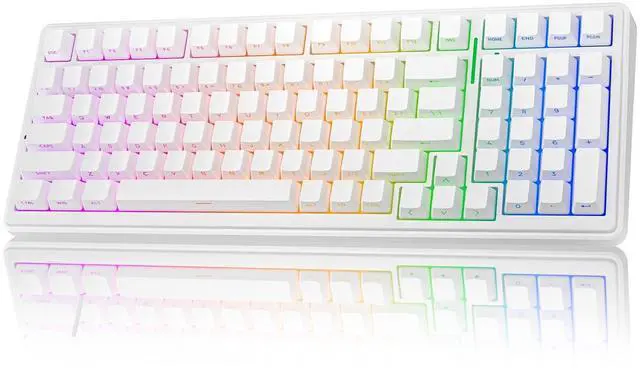 Key Slotting: This computer keyboard features a advanced structure, extended integrated silicone pad, and PCB single key slotting, better optimizes resilience and stability, making the hand feel softer and more elastic. Five layers of filling silencer fills the gap between the PCB, the positioning plate and the shaft, effectively counteracting the cavity noise sound of the shaft hitting the positioning plate, and providing a solid feel ^^ RGB