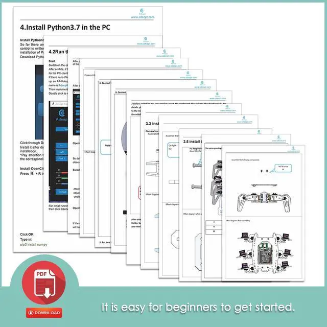 Please download: w-w-w. adeept. -com > Learn > Ctrl+f > ADR015 ^^ Raspberry Pi is NOT included.