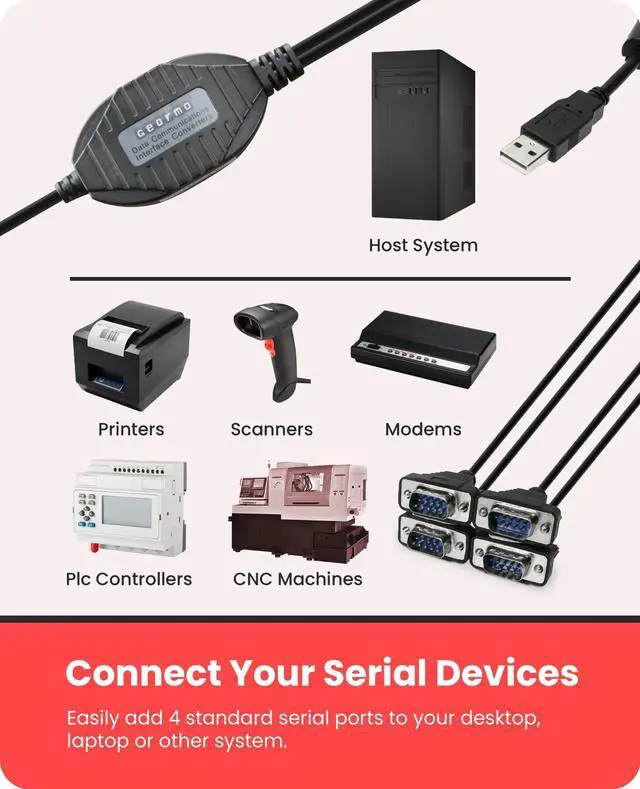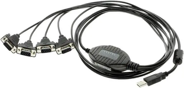 Introduction: 3 foot quad port USB 2.0 To serial adapter ft2232d chip with power rx and tx led. This USB to serial quad rs232 port converter cable utilizing the high performance ftdi chip easily adds 4 standard serial ports to your desktop, laptop or other mobile device. Serial outputs are automatically configured as additional com ports. Compatible with most GPS and pda devices (Garmin, mallagan, palm), modems, printers, scanners, digital cameras and office equipment. This converter cable has protection against static electricity and surges up to 15kv which gives you reliable data transfers and protects the converter and your equipment from damage due to over voltages.