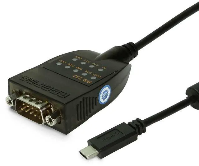 USB 2.0 TO RS232 SERIAL - 3ft in length serial adapter. Connect legacy DB-9 serial communications devices to a modern computer with USB ^^ EASY TEST - Easy test RS-232 host to device link. With a full LED, dual color display, tester output. This will make testing your connections with ease. ^^ FEATURES - Supports reversible USB type-C connection only, can not be connected to any other USB port. ESD Protection for RS-232 I/O +-15KV RS-232 for DTE Mode. PDA RS-232 Port support 56K Modem support Serial Mouse support+ Serial PC camera support.
