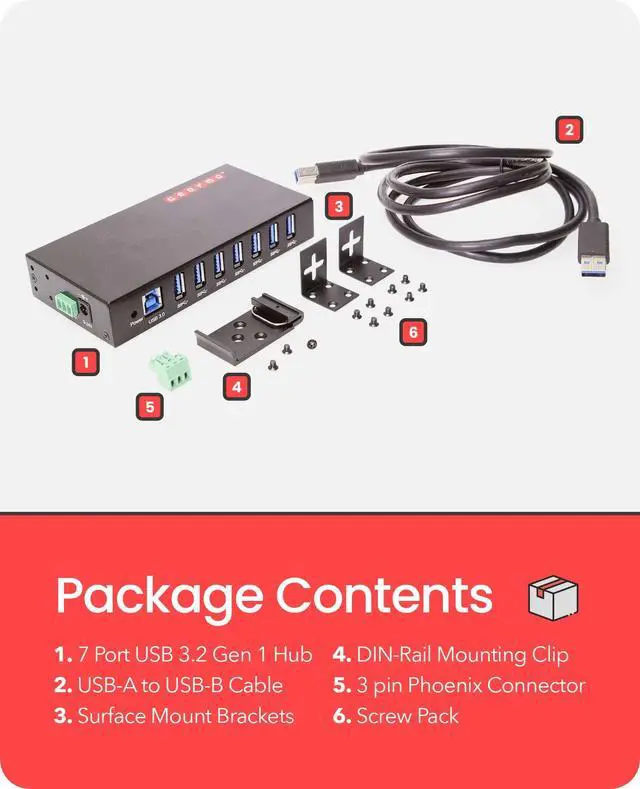 Build ]: Housed in a durable metal chassis with mounting brackets and DIN-Rail options, this hub stands up to demanding environments while staying securely in place. ^^ [ Power Where You Need It ]: Keep power-hungry devices running smoothly with flexible 9-24V DC input options, including a standard power jack and a 3-wire terminal block for industrial-style setups. ^^ [ Surge and Over-Current