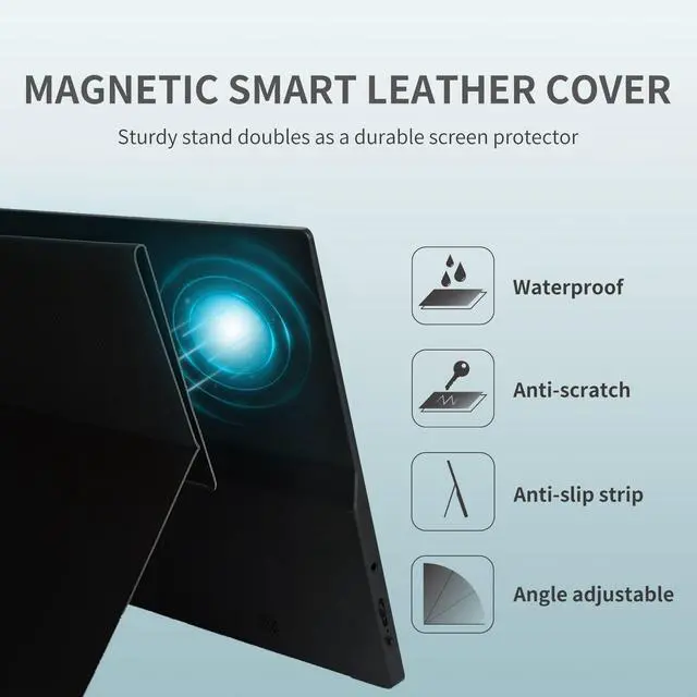 Please refer to the user manual for more information. ^^ Ultra slim & lightweight travel monitor. Crafted with premium aluminum frame, the ReHisk portable external monitor weighs 1.7 pounds. Designed with portable in mind, you can bring the second screen anywhere and greatly increase work productivity. ^^ Durable smart cover. The magnetic smart cover doubles as a stand is tailor-made for the ReHisk portable monitor, offering complete protection and supporting in either landscape or portrait mode. ^^ What you get. The Rehisk 15.6 '' portable monitor, 1*smart cover, 1*USB-C to USB-C Cable, 1*HDMI to Mini HDMI Cable, and manual.