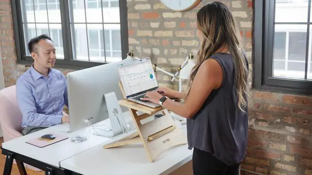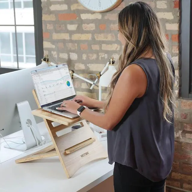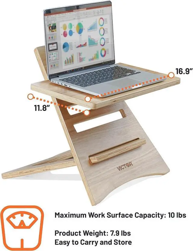Victor DC150A High Rise Collection Acacia Wood Adjustable Laptop Stand, Brown, Portable, Fast Assembly, Perfect for Dorms/Bedrooms/Small Offices