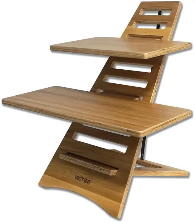 Victor DC175A High Rise Collection Acacia Wood Adjustable Laptop Stand, Dual Trays, 10 Levels, Fast Assembly, Perfect for Dorms/Bedrooms/Home Offices