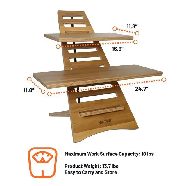 • Victor DC175A High Rise Collection Acacia Wood Adjustable Laptop Stand, Dual Trays, 10 Levels, Fast Assembly, Perfect for Dorms/Bedrooms/Home Offices