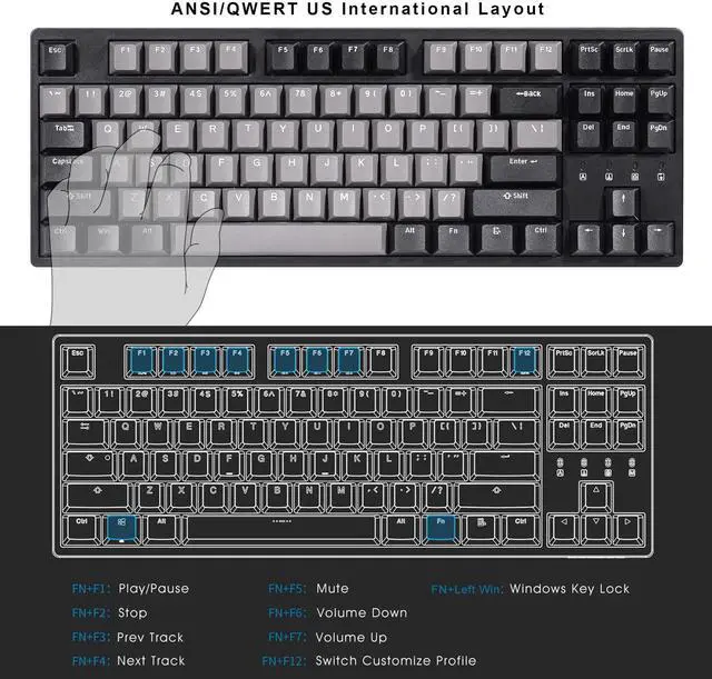 • Anti-Ghosting Technology for Flawless Performance: This TKL mechanical keyboard is equipped with advanced anti-ghosting technology, ensuring every keystroke is registered with precision, even during the most intense gaming sessions. Whether you're executing complex combos on your gaming keyboard or typing at high speeds, this tenkeyless mechanical keyboard guarantees no missed inputs, delivering a seamless and respon