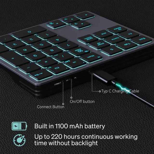 Dual Mode - Bluetooth 5.1 & USB Wireless Connectivity: The numeric keypad supports Bluetooth and wireless USB connection at the same time. You only need to short press Fn + "BT" or "2.4G" button to switch seamless between different channel.
