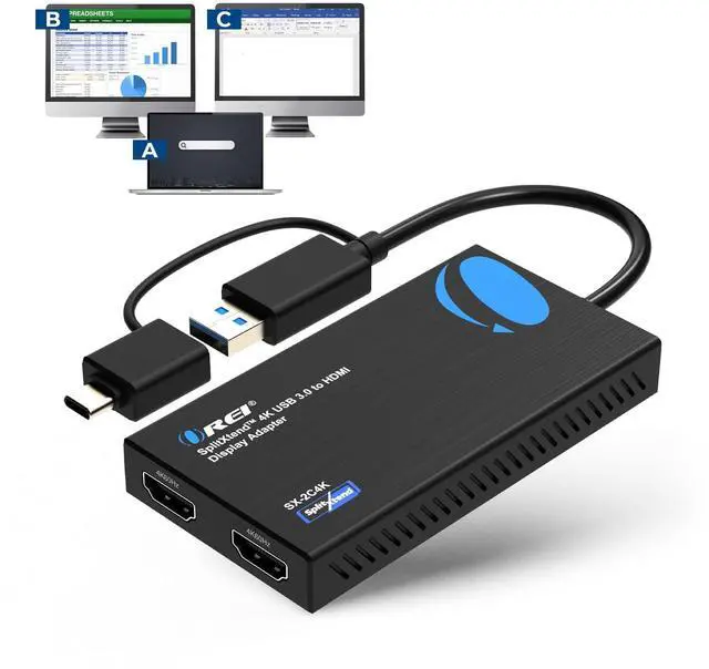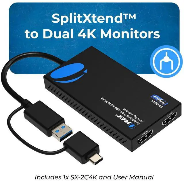 SPLITEXTEND - Split and Extend your Monitor to work twice as fast. Full 4K @ 60hz Display on Both Extended Screens. With this adapter you will able to plug 2 HDMI Monitor Display to your Laptop or Desktop to get Extended Display. It will allow you to display 3 separate screen including your laptop screen. Enable extended display on Apple M1/M2/M3 MacBooks.