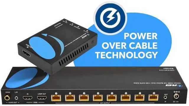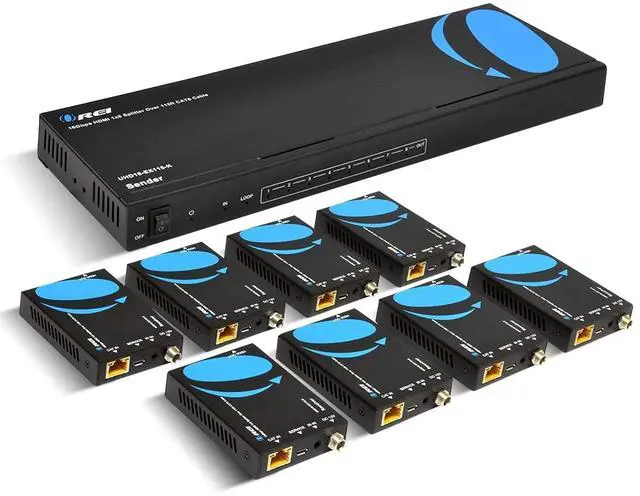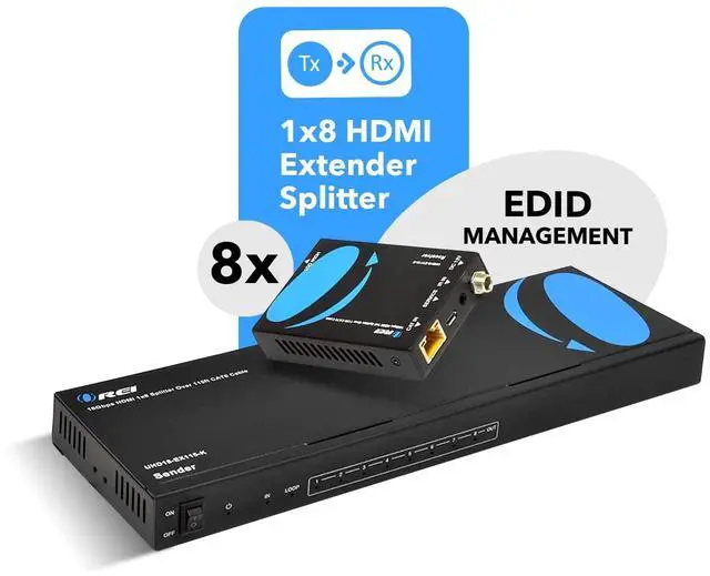 Product DescriptionThe UHD18-EX115-K is an HDMI extender splitter that distributes a media signal to 8 distant displays. Supporting video resolutions up to 4K@60Hz, it is HDMI 2.0 b and HDCP 2.2 compliant, with an 18Gbps video bandwidth and support for HDR10+ and Dolby Vision. It extends media to 8 displays up to 115 feet away over CAT 6/7 cables. The Transmitter includes an HDMI loop output for a nearby display. It features advanced EDID management and one-way IR Control for source control from the Receiver location. Only one power adapter is needed to power up the setup as it supports Power over Cable technology.