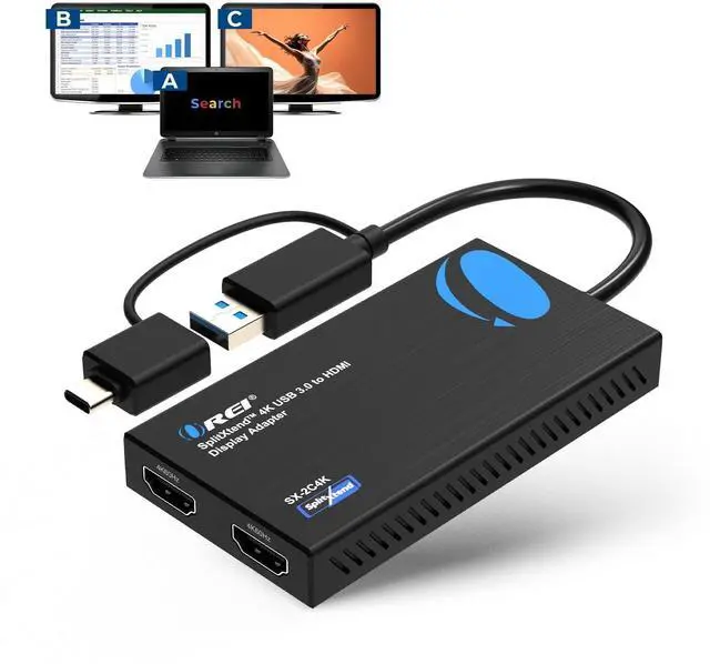 SPLITEXTEND - Split and Extend your Monitor to work twice as fast. Full 4K @ 60hz Display and 2K@60Hz on Both Extended Screens. With this adapter you will able to plug 2 HDMI Monitor Display to your Laptop or Desktop to get Extended Display. It will allow you to display 3 separate screen including your laptop screen. Enable extended display on Apple M1/M2/M3 MacBooks.