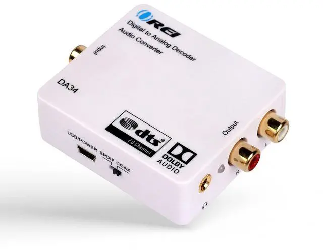 Decodes DTS/Dolby Digital source digital audio to analog 2.0CH stereo audio output (RCA L/R and 3.5 mm Headphone), Supports Digital
