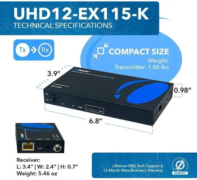 ^^ Package & Warranty: Includes 1 transmitter, 2 receivers, 1 power adapter, 1 IR blaster cable, 2 IR receiver cables, and 1 user manual. One power adapter powers the entire system. Backed by 1-year OREI manufacturers warranty.