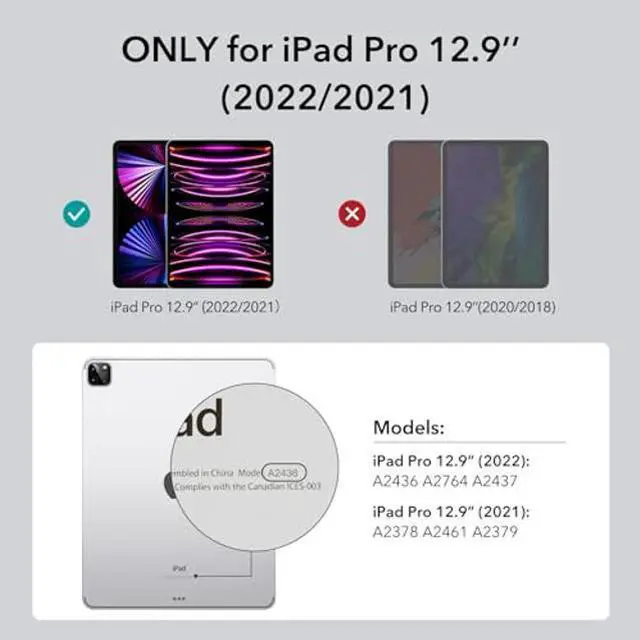 Compatibility: only compatible with iPad Pro 12.9" (2022/2021); models A2764, A2766, A2436, A2437, A2378, A2379, A2461, A2462 not compatible with any other iPad models