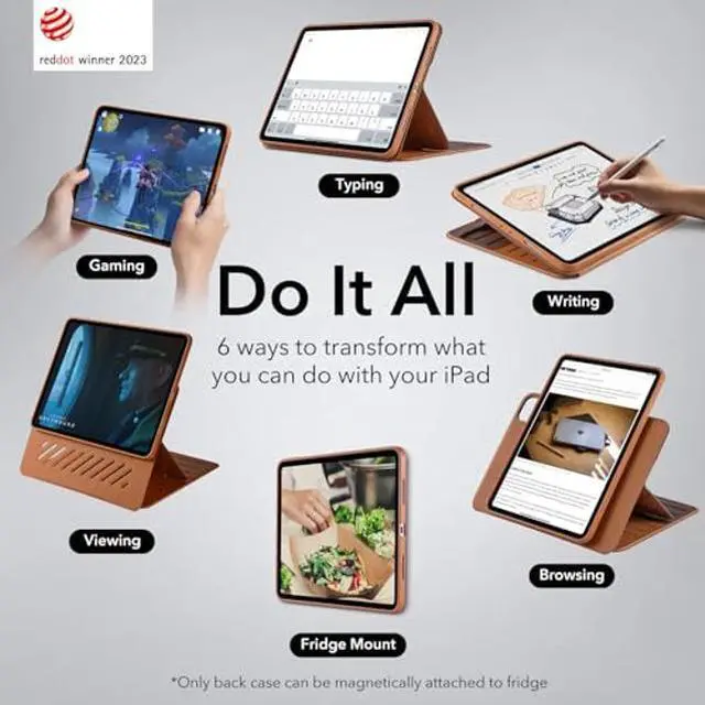 Powerful Versatility: achieve up to 9 different angles, 6 for viewing and 3 for writing, via the dual support brackets and 6 magnetic grooves, then instantly detach for hands-on gaming or to magnetically attach to your fridge