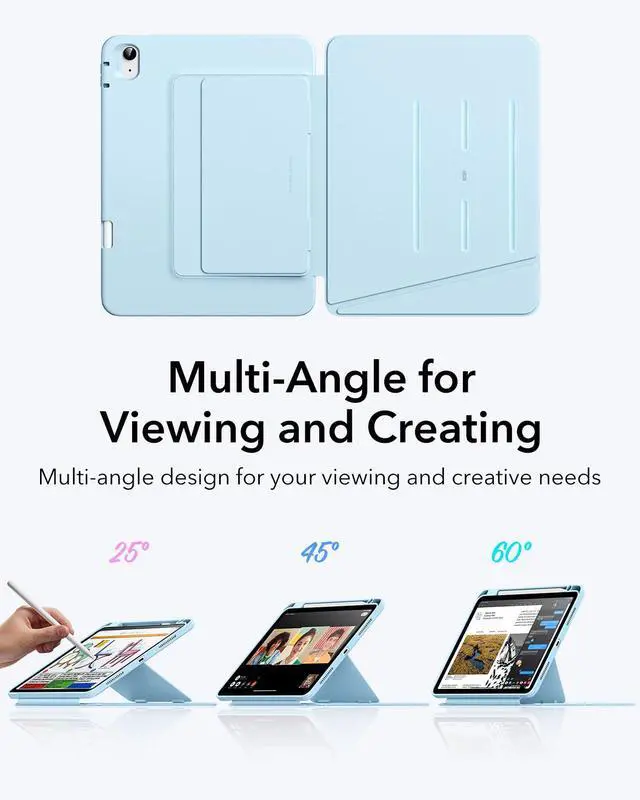 Multi-Angle Design: features two stand modes, 45deg-60deg for viewing, perfect for watching videos, working, FaceTiming, and more, and 25deg for writing mode, ideal for writing, painting, or other creative tasks