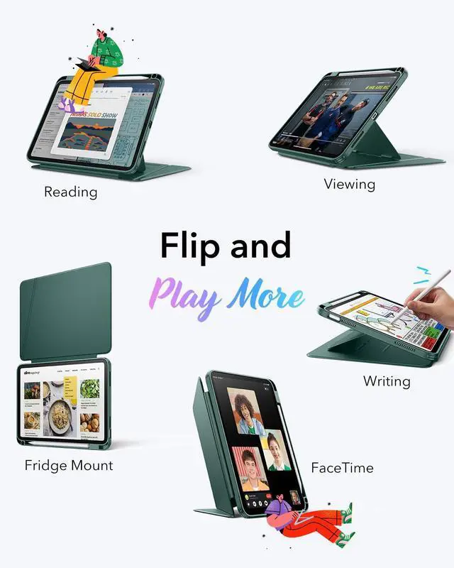 Ultra-Stable Stand: designed with a wide cover and strong magnetic bracket, this case is stable on any surface, whether a sofa, bed, hands, or even on your lap, ensuring it remains upright without slipping
