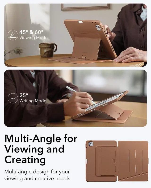 Multi-Angle Design: features three landscape angles, 45° and 60° for comfortable screen viewing, perfect for watching videos or working, and a 25° angle that's great for drawing, writing, and other creative tasks