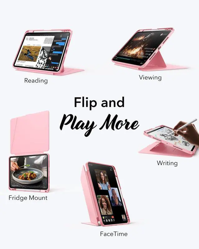 Flip and Play More: the three magnetic grooves allow you to adjust the device's angle from 25° to 60° in landscape mode, making it perfect for reading, watching movies, and writing; it can also be used in portrait mode with a stable support, which is ideal for browsing the internet and making FaceTime calls; additionally, you can attach it to magnetic surfaces like refrigerators, for added convenience in various situations