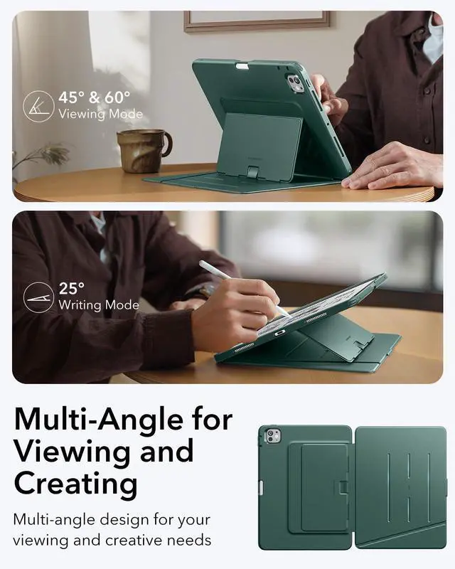 Multi-Angle Design: features three landscape angles, 45° and 60° for comfortable screen viewing, perfect for watching videos or working, and a 25° angle that's great for drawing, writing, and other creative tasks