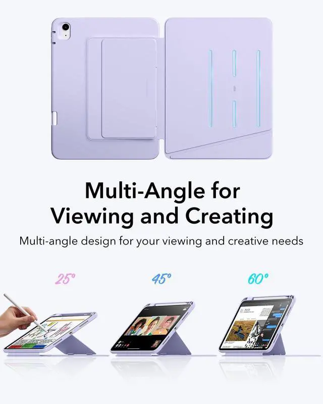 Multi-Angle Design: features two stand modes, 45-60 for viewing, perfect for watching videos, working, FaceTiming, and more, and 25 for writing mode, ideal for writing, painting, or other creative tasks ^^