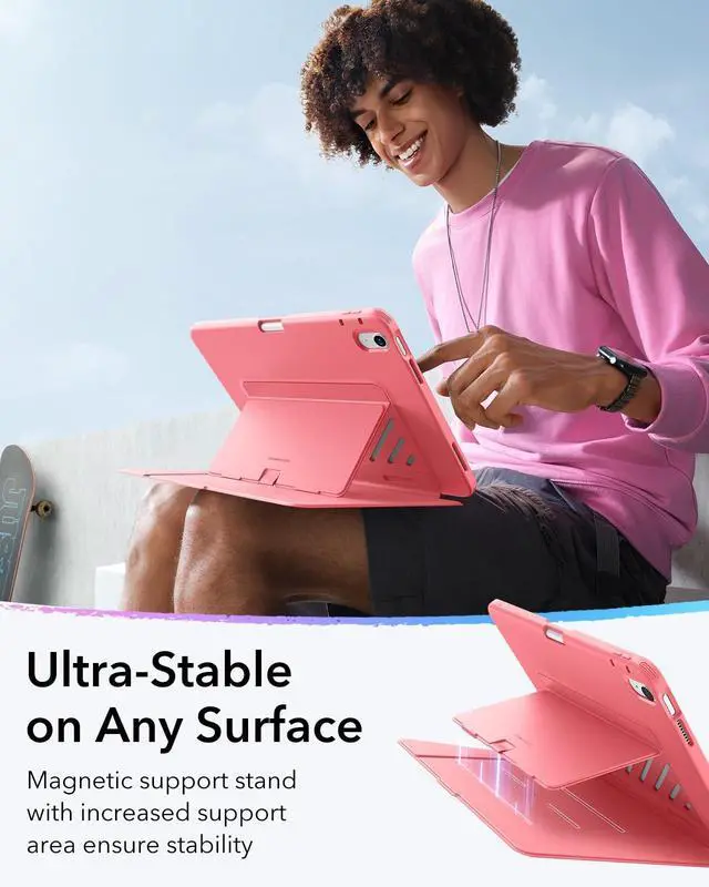 Ultra-Stable Stand: designed with a wide cover and strong magnetic bracket, this case is stable on any surface, whether a sofa, bed, hands, or even on your lap, ensuring it remains upright without slipping ^^