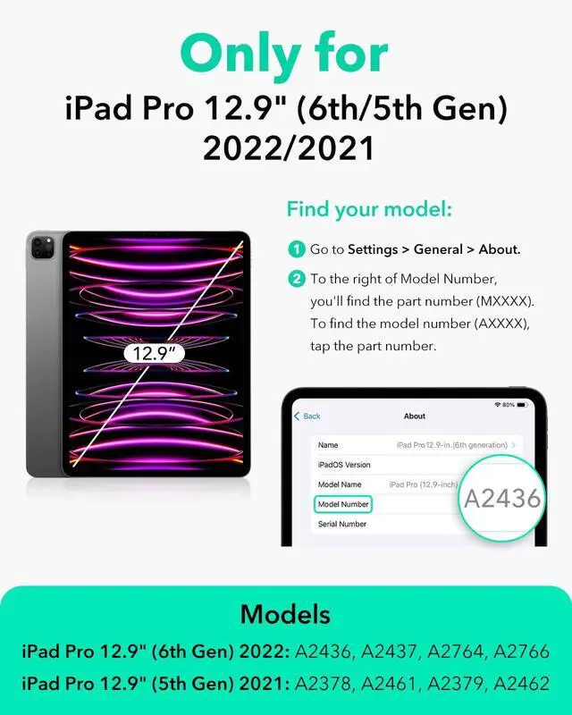 Compatibility: only compatible with iPad Pro 12.9 (2022/2021); models A2764, A2766, A2436, A2437, A2378, A2379, A2461, A2462 not compatible with any other iPad models ^^