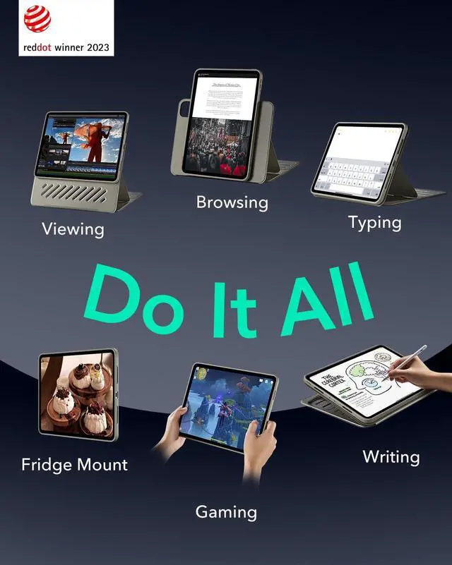 Powerful Versatility: achieve up to 9 different angles, 6 for viewing and 3 for writing, via the dual support brackets and 6 magnetic grooves, then instantly detach for hands-on gaming or to magnetically attach to your fridge ^^