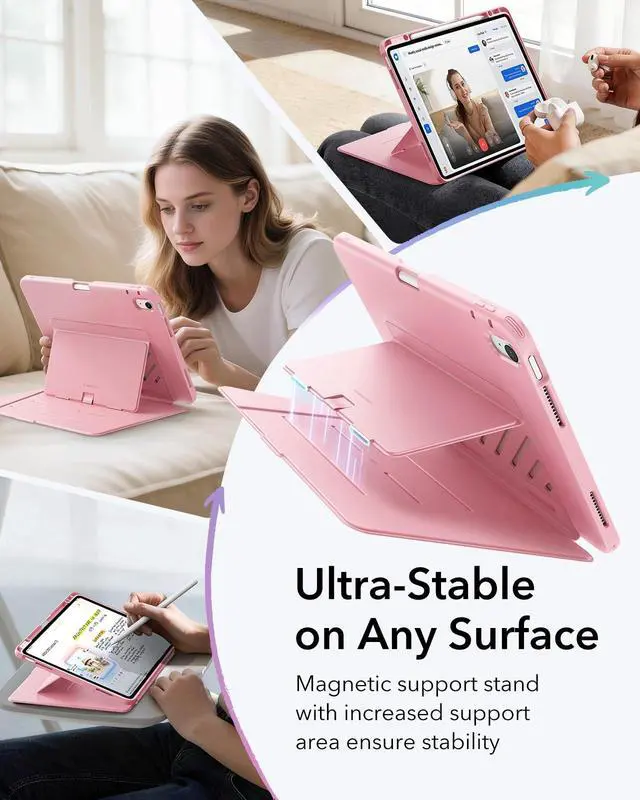 Ultra-Stable Stand: designed with a wide cover and strong magnetic bracket, this iPad Air 13 inch case is stable on any surface, whether a sofa, bed, hands, or even on your lap, ensuring it remains upright without slipping ^^