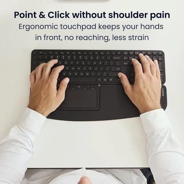 ERGONOMIC TOUCHPAD FOR SHOULDER COMFORT: Contour Touch sits beneath your keyboard to eliminate reaching for a mouse. This centralized position helps keep your hands within shoulder width, reducing strain on your neck, shoulders, and forearms.