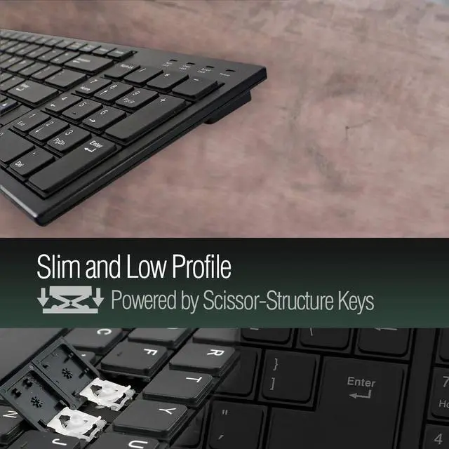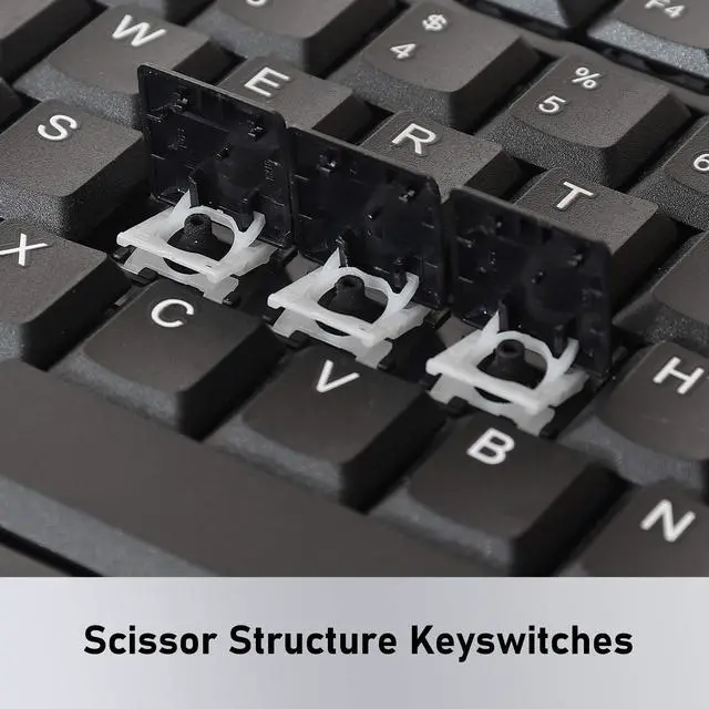 Scissor-Structure Key-Switches ^^ 4 LED Indicators: Num Lock, Caps Lock, Scroll Lock And Power ^^ Every Stroke Is Comfortable. Tested For Up To 10 Million Keystrokes ^^ Package Weight: 1.55 pounds