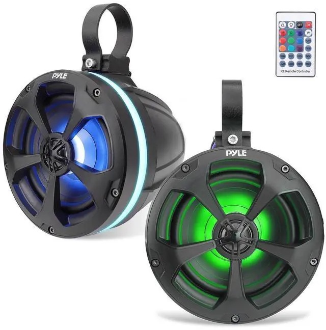 Features: - Pro Audio PowerSport Speakers with RGB Lights - Amplified (Active) Speaker System - Bluetooth Wireless Music Streaming Ability - Bridged