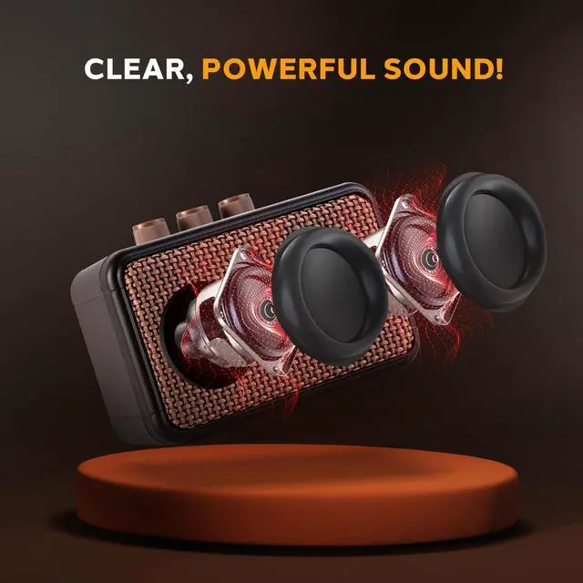 The 5W Portable Mini Electric Guitar Amplifier is a compact and powerful solution for guitarists looking for a versatile and portable practice amp. Designed with a sleek black finish, this mini amplifier features a 1.75 full-range x 2 speaker system that delivers clear, high-quality sound with an enhanced high-frequency response. Whether you're practicing at your desk, in your bedroom, or jamming outdoors, this battery-powered amplifier is ideal for all situations. It comes with user-friendly controls, including volume, tone, gain, and a drive switch, as well as Bluetooth connectivity for added convenience.