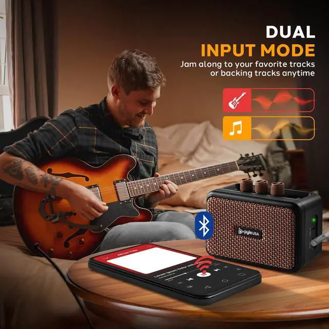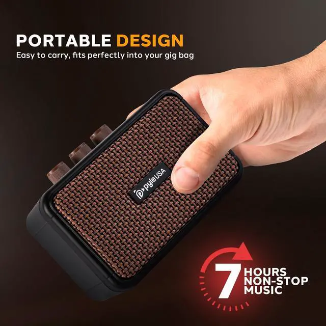 Weighing only 4800mAh with a lightweight plywood and high-quality leather construction, this mini guitar amp is designed for portability. The 5W amplifier is powered by a 3.7V /2000mA lithium battery, offering long-lasting use. It also features both a 1/4 input jack for your guitar and a 1/4 headphone output for silent practice. With the LED power indicator and a sturdy build, this electric guitar amp is the perfect companion for on-the-go musicians. Ideal for desktop practice, this mini amplifier is a must-have for any guitarist looking for quality sound in a portable package.