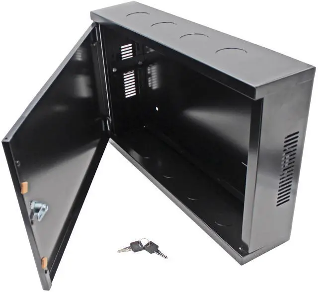 Secure Rack Enclosure: Solid rear panel has predrilled mounting holes and the solid steel door has a steel frame and key lock.