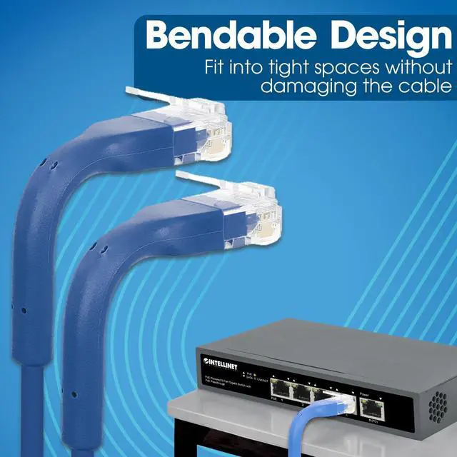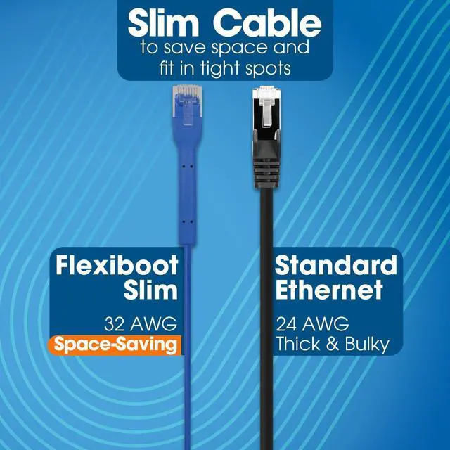 Convenient Design: Ultra-thin format simplifies cable management in tight spaces, with flexible connector covers that protect RJ45 plugs and allow easy bending to the desired angle. Whether that is 90 degree right angle or 45 degree. the cable bends to your needs.